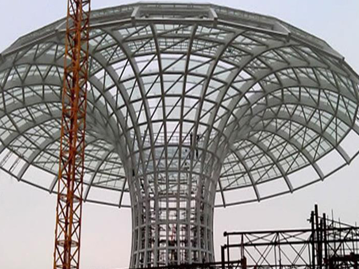 二、球形网架结构因其结构新颖,受力合理,自重轻、用钢量低等优点。如大型体育场馆球形灯塔螺栓球网架、公共场馆球形网架、电厂灯塔螺栓球网架、水泥工业球形网架、仓储物流球形网架、灯塔干煤棚工业球形网架、灯塔收费站灯塔加油站球形网架、展览中心、影剧院、商场、航站楼、候车厅、工厂灯塔车间、仓库、电视塔等球形螺栓球节点网架。国内球形网架结构主要分为:灯塔焊接球节点网架及螺栓球节点网架两种。螺栓球节点网架其构件工厂内加工量较大,现场安装便捷,适用于现场工期紧,灯塔施工条件、用电量受制约,网架形状复杂、灯塔杆件定位困难的异形结构。螺栓球节点球形网架系统基本由灯塔杆件、螺栓球、支撑支座等组成。按照节点形式可分为交叉灯塔桁架体系、四角锥体系、三角锥体系等。支撑方式多为固定支座支撑。对于大面积、大跨度及有特殊受力或伸缩要求的网架结构可采用橡胶支座、滑移支座、球铰支座等支撑形式,以满足结构自身的受力稳定、均衡,便于内力释放等设计要求。